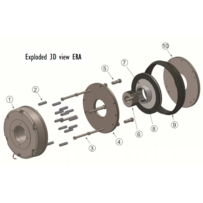 Los frenos de muelle de las series ERA, ERB & ERC son frenos con dos superficies de fricción. Cuando no se aplica corriente, la fuerza de frenado se genera mediante varios muelles de presión enrollados.